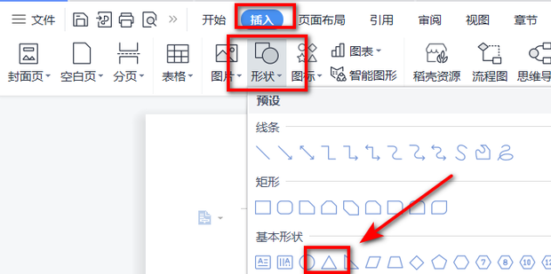 1:进入word文档i选择插入--形状--三角。