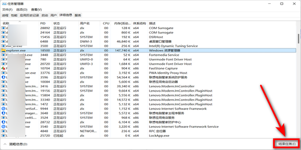 4:选择“explorer.exe”点击结束任务。