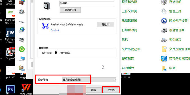 3:都会跳转到声音设备面板,将声音设备启用,点击应用。