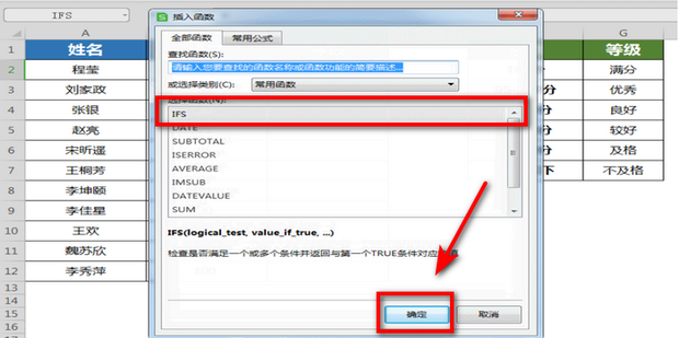 3:找到IFS函数,然后点击确定。