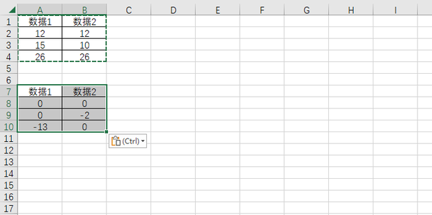 5:此时不为0的单元格误女换条半存属就是不一样的单元格,这样就完成了数据的对比。