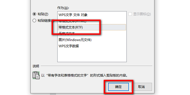 3:这里选择带格式文本(RTF),然后点击确定即可。