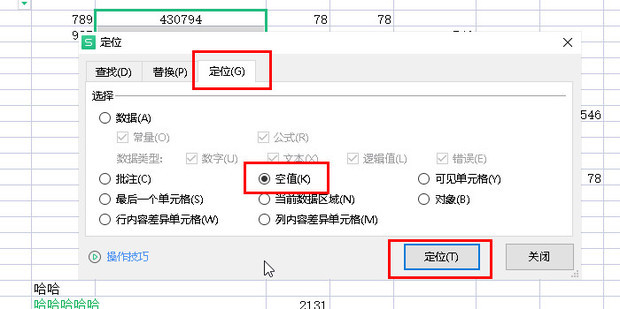 2:按下ctrl+g,在定位中点击空值,点击定位。