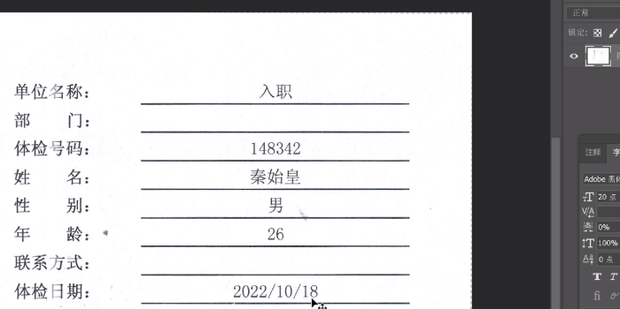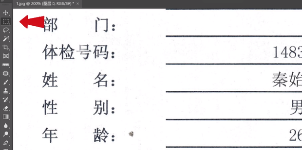 1:如图所示,用ps打开需要修改的图片观察图片中是否有需要的文字,这里要将年龄的26修改成28。