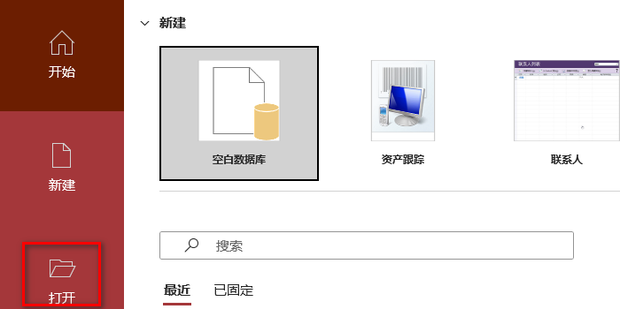 1:首先打开access,打开后点击打开。
