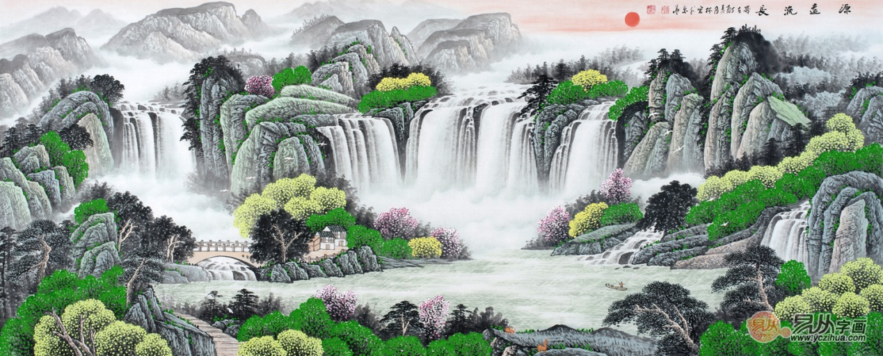 办公室挂《源远流长》山水画,聚财生财,事业运势旺!