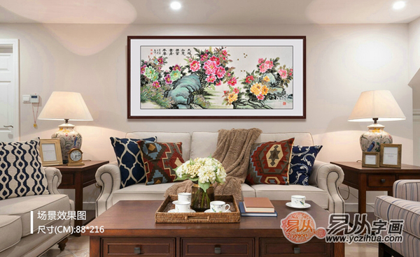 比如您家客厅比较大,装修时也是专门定制的长沙发,尽管您喜欢上了我们网站画家石开老师的八尺牡丹《花开富贵》,可是尺寸还是偏小,您将所需的作品尺寸发给在线客服,便可以为您预约老师定制。