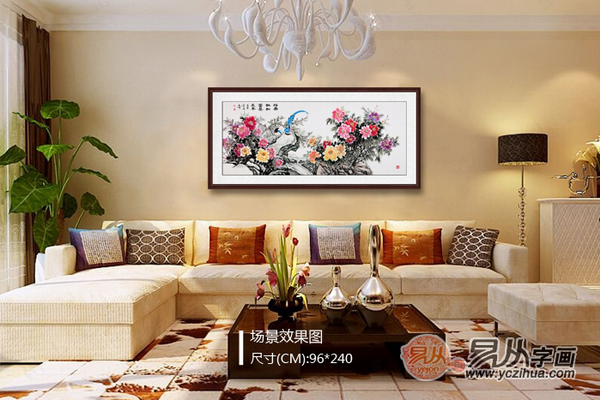 牡丹画属于我国传统上的吉祥风水画,其作为吉利之物,本身就能趋吉避凶,增旺家居风水,自然无风水禁忌,更无位置忌讳。只需根据各个场合,选择相应尺寸即可。比如入门玄关一般挂四尺竖幅(135*68cm)或者斗方(68*67cm)的牡丹,客厅沙发墙可根据沙发长度选择四尺、六尺、八尺或者定制其他尺寸,像卧室、书房、餐厅等场合也是如此。
