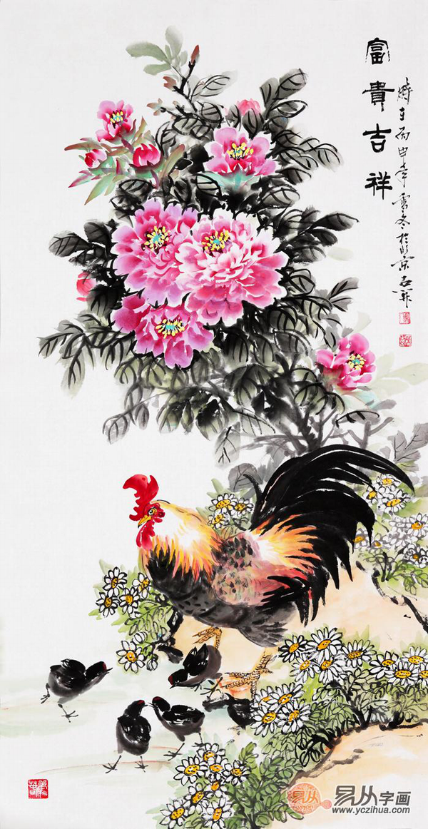 2、 牡丹+锦鸡
