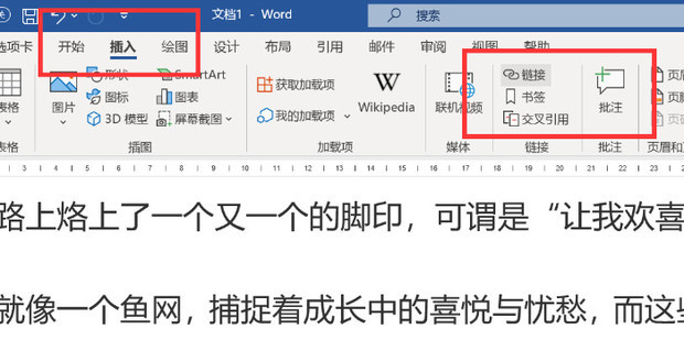 1:点击插入打开WORD来自文档,点击菜单栏上“插入-链接”。