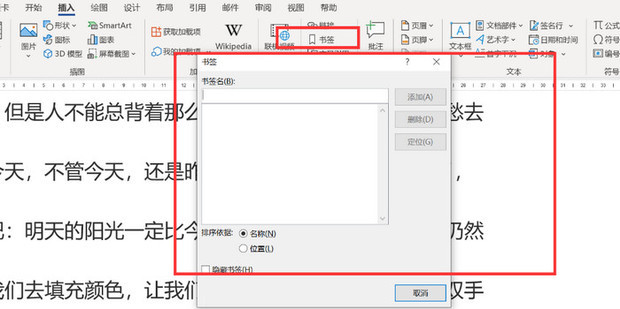 3:插入书签移动鼠标到超链转跳的地方,点击菜单栏上“插入-书签”督矿茶零厂洲给或儿活较,弹出窗口。