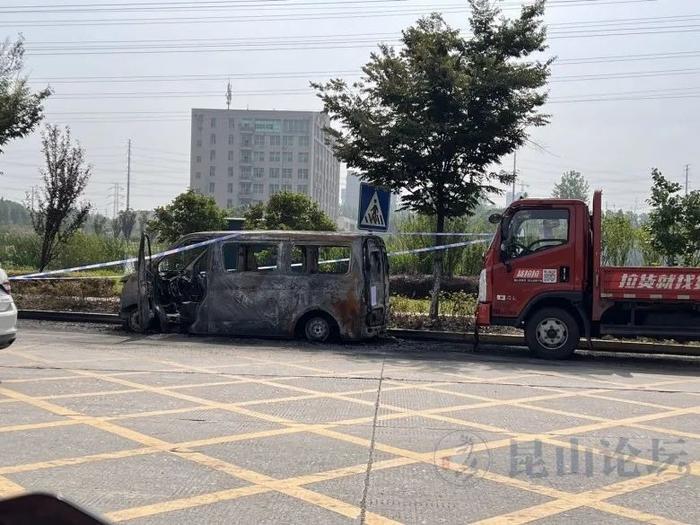 昆山论坛网友“滴滴答答123”爆料:昆山红杨路红杨幼儿园对面面包车自燃。