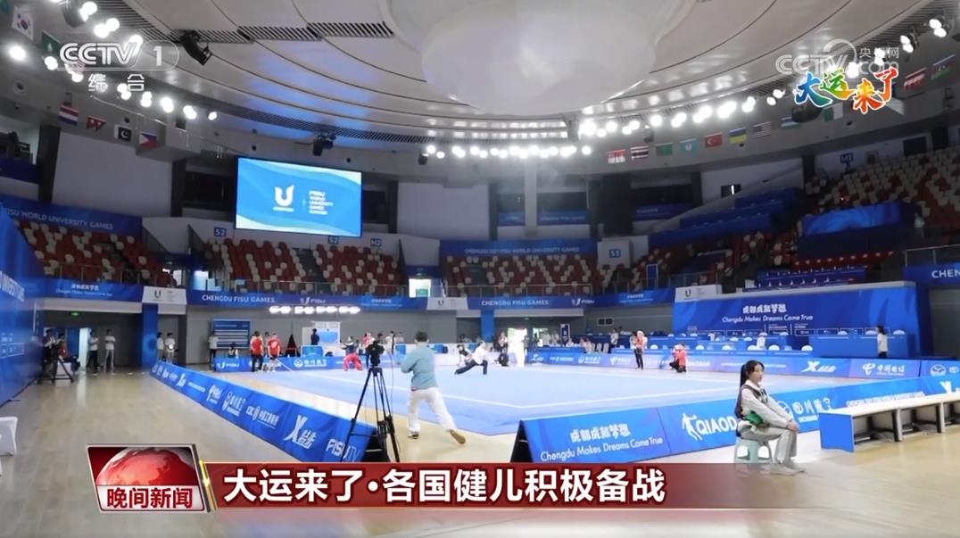 7月27日,来自中国、法国、日本、阿塞拜疆等国家和地区的武术队运动员们来到了城北体育馆熟悉场地,开展实地训练。按照计划,本届大运会武术项目比赛将于7月29日至8月3日在这里举行,包含武术套路和武术散打两大类比赛。本届大运会的首枚金牌将在7月29日的武术套路项目男子南拳中产生。