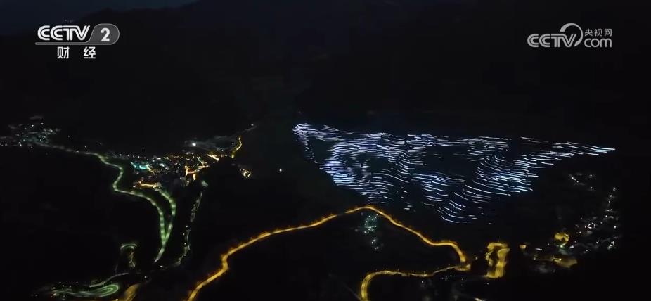 夜光梯田灯光演绎效果以沙画形式表现,梯田为“布”,光影为“沙”,通过明暗虚实间的转换展示生动别致的动画,实现自然美景与人文艺术交融的沉浸式游览体验,为游客提供了更好的夜间观光互动体验。
