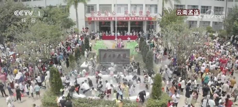 现在,正值傣历1385年泼水节,云南多个城市热闹非凡,一片欢乐的海洋。在孟连县娜允广场,数万名游客和当地群众以水之名、泼水狂欢。