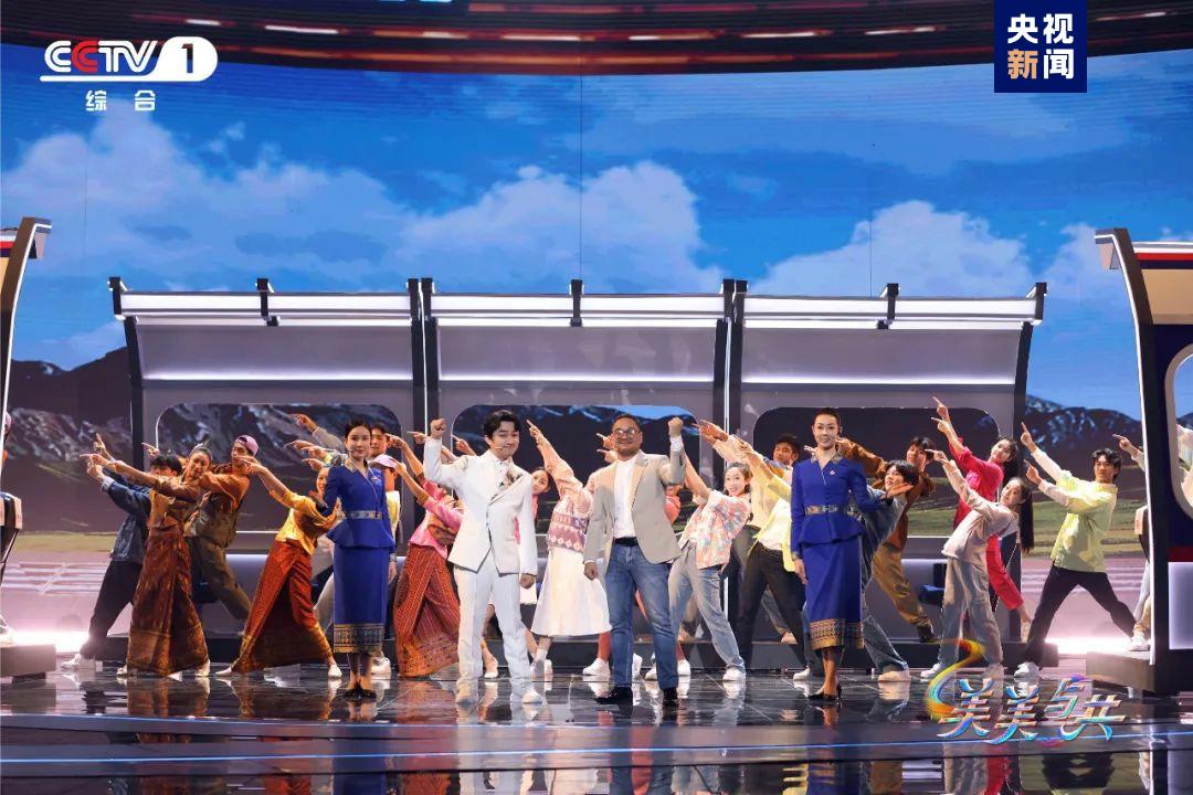 2023年4月,中老铁路正式开通了跨境的双向客运通行,成为连接中国与南亚、东南亚的黄金大通道,也成为两国青年人才交往的“连心桥”。《美美与共》讲述了这条铁路上中国列车长代蕊与老挝列车长佟康密之间“最美师徒”的故事。舞台上,她们与老挝歌手阿提萨·拉达那冯和中国香港演员、歌手王祖蓝携手演绎了歌曲《一带一路》,这首诉说两国深厚友谊的歌曲每日都在中老铁路的列车中唱响。共建“一带一路”倡议不仅使共建国家的经济联系在了一起,更将各国人民的心维系在了一起。