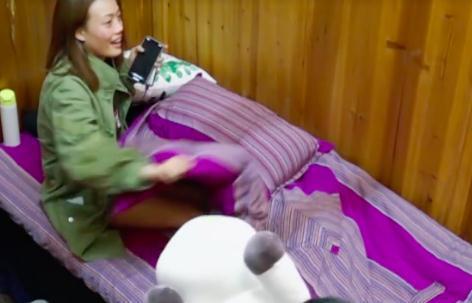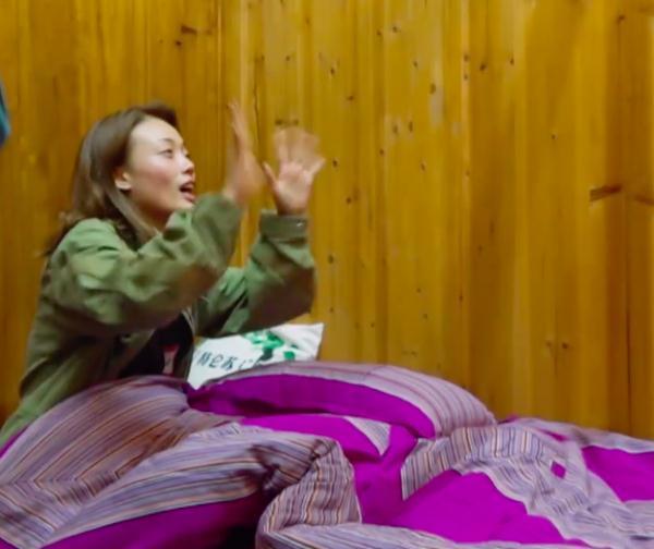 黄磊的突然到来,引得容祖儿慌忙把被子盖到自己的身上,走光的情况并未发生,但也令容祖儿尴尬不已。