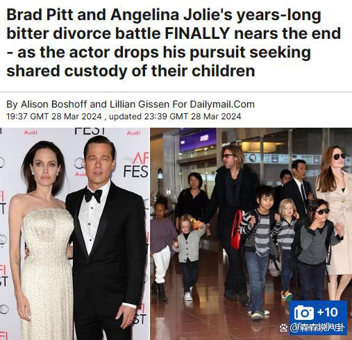 据《每日邮报》3 月 28 日报道,布拉德 · 皮特与前妻安吉丽娜 · 朱莉的离婚官司接近尾声,皮特最近作出让步,放弃对 6 个孩子共同监护孩子的要求。