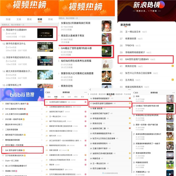 其中,GAI周延为国漫神作《哪吒之魔童降世》演唱的主题曲《哪吒》,长期盘踞QQ音乐、酷我音乐、酷狗音乐、亚洲金曲榜等十多个榜单的榜首位置。歌曲总播放量突破20亿,相关话题曝光量突破100亿。GAI周延为雷佳音、杨幂、董子健主演的电影《刺杀小说家》演唱主题曲《刺》,获得第34届金鸡奖最佳电影音乐奖提名。