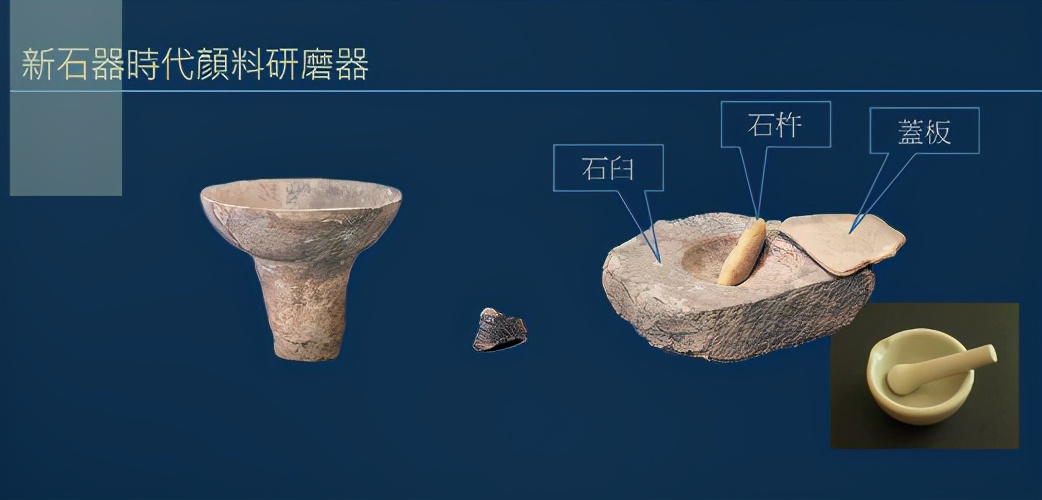 陕西历史博物馆藏有姜寨发现的颜料研磨器,这是五千多年前的器物。