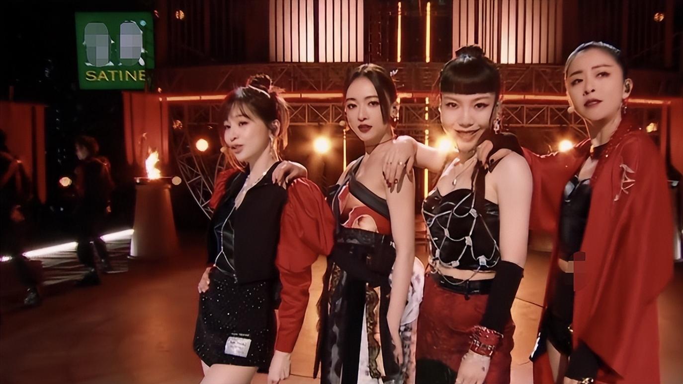 比较有趣的是,她们都是统一的大红色,另一边的谭维维一个人涂浅色口红,算是画面感分明了。