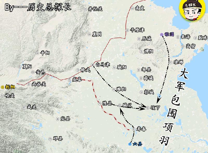 刘邦主力军声势再度壮大,大军屯驻于陈县外围一带,他马上下令征召韩信、彭越前来固陵会合,以图全力进攻项羽的东撤大军。