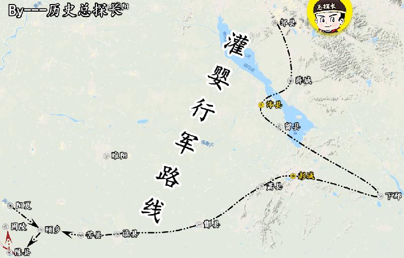 灌婴一路攻城略地,迅速攻下邹县、薛城、沛县、留县、下邳、彭城、萧县、酂县、谯县、苦县,几乎将楚军的据点横扫一遍,随即顺利在颐乡和刘邦主力大军会合。