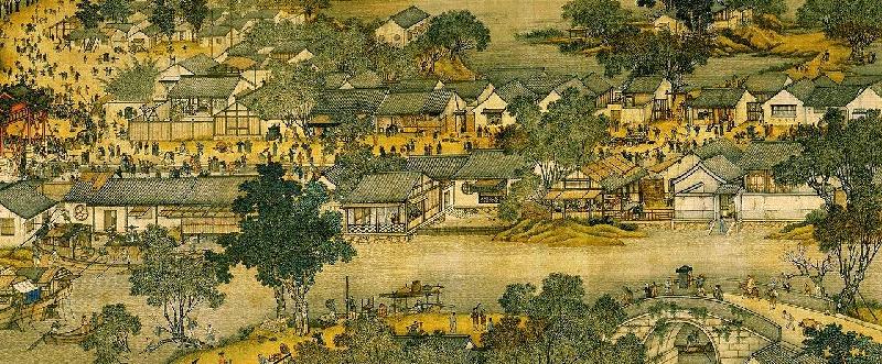 北宋一副著名的风俗画,它的作者是张择端,全长达到了528.7厘米,宽达到了24.8厘米。该画采用了散点透视的一个手法,将当时北宋的生活记录了下来,上至帝王出行,下至平常老百姓的生活,都被记录在这长卷之中。