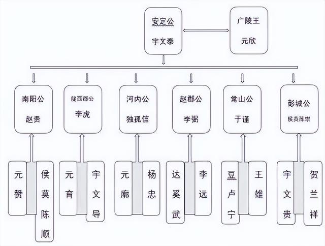 这八柱国中,宇文泰是老大,手握所有的实权。元欣是西魏宗室,基本相当于小吉祥物。所以说,只剩下六柱国掌管手下十二位大将军,每个人统领两位。