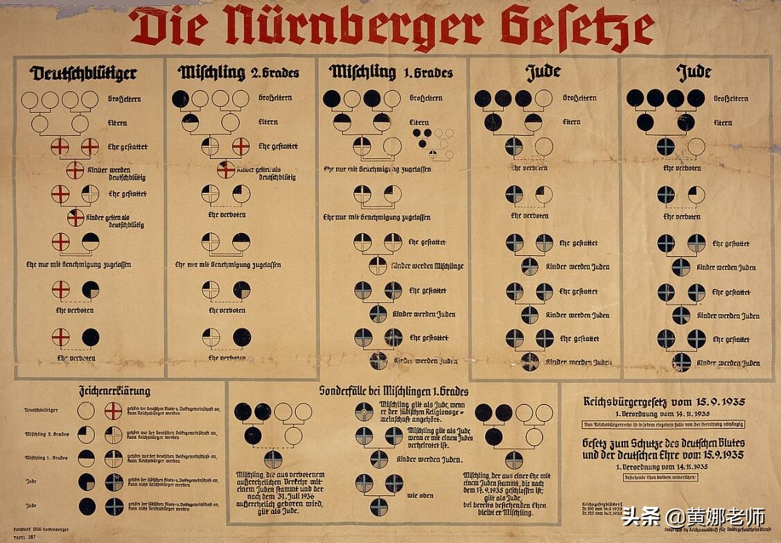 《纽伦堡法案》强行规定的鉴定犹太人血统图谱,它的起草者之一,汉斯·格罗布克战后还担任过西德国务秘书