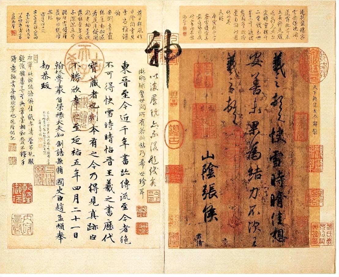 八、快雪时晴帖《快雪时晴帖》是东晋书法家王羲之的行书作品之一。乾隆皇帝对此迹爱不释手,视为珍宝。
