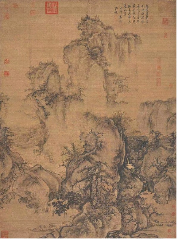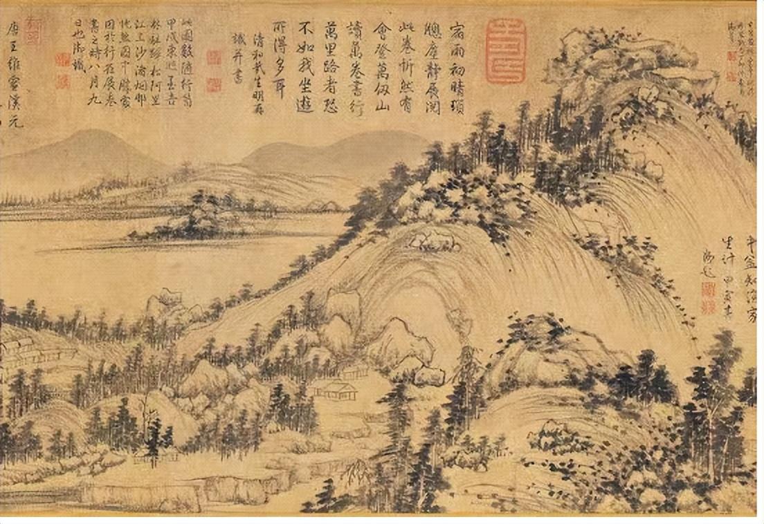 仔细看山间水边的人们的活动给这幅画增添了些许生气,这就是画中所展示的东西。