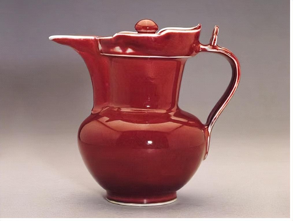 四、宝石红僧帽壶如今收藏在台北故宫博物馆的宝石红僧帽壶有两大看点,一是该壶的器型像一顶西藏喇嘛所带的帽子,这也正是其名字的由来,二则是其通体都是宝石红色。
