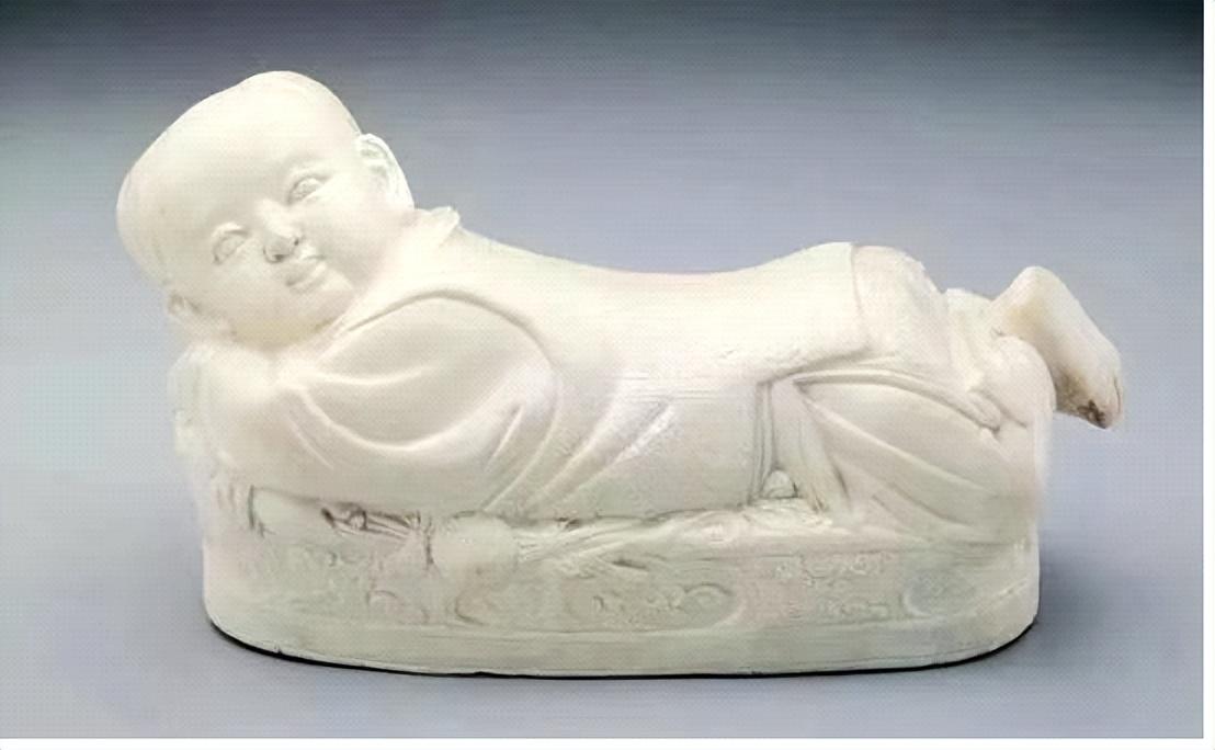 刚才说的瓷器莲花式温碗,出自汝窑,而同为台北故宫博物馆收藏的宋朝另一瓷器婴儿枕,则出定窑。
