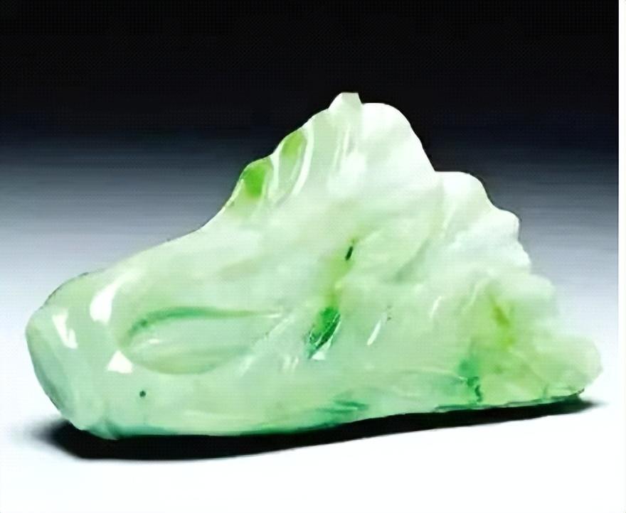 一、翠玉白菜这是由一块半白半绿的翠玉所雕琢出来的,白菜形状的玉器。这颗翠玉白菜长约18.7厘米,宽约9.1厘米,厚约5.0厘米,和真实大白菜的相似度高达99%,放在白菜堆里,不仔细看很难发现。