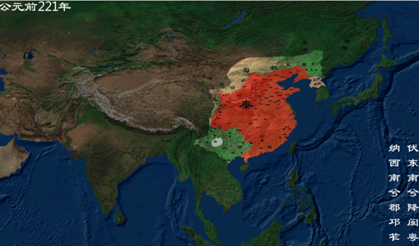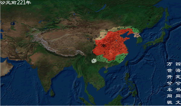 秦始皇,嬴政,秦庄襄王之子。自公元前230年至前221年,先后灭韩、赵、魏、楚、燕、齐六国,完成了统一中国的大业,建立起第一个以早期汉族为主体的强大秦汉多民族统一的大帝国——秦朝。定都咸阳。并创立了一套专制主义的中央集权制度。从此开始四海定兮书同文,万事开兮,车同轨。以下是秦朝统一后的地图