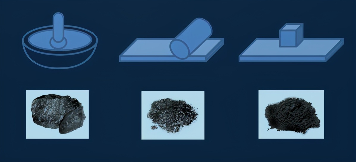 二是放在石板上碾压,颗粒状的石墨可用这方法碾细,碾对每一粒矿物施加的压力是相同的。三是放在石板上来回磨,磨可以得到很细的粉末。