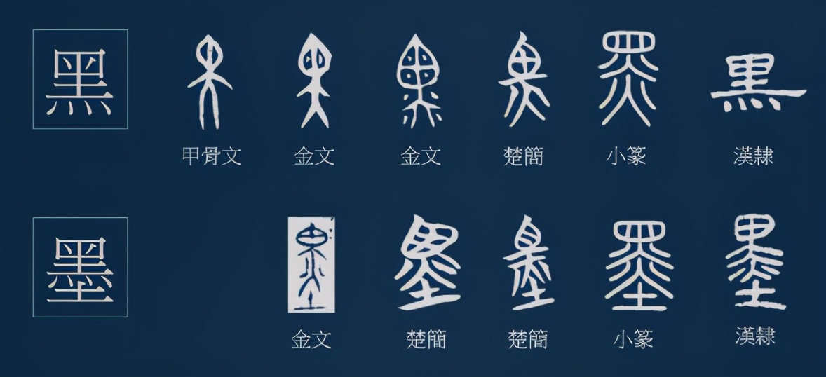 后来「黑」字的衍伸意义增加了,为避免弄错,于是另造一个「墨」字,「黑」下面繁化加了「土」。