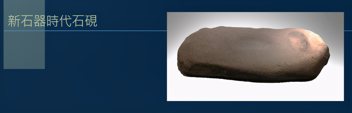 这是新石器时代后期平板颜料研磨器,表面平整,河南陜县庙底沟出土,中国国家博物馆藏。磨具上面那块黑乎乎的赤铁矿,可磨出深红色。