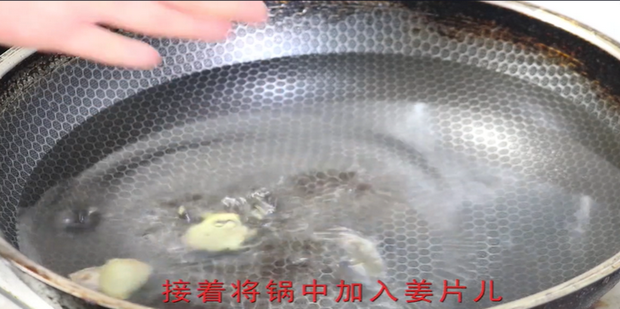 24:热广校胜锅烧油下入葱段、蒜念方瓣、姜片。