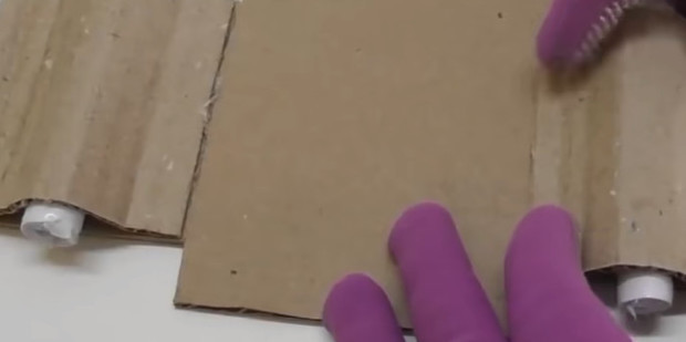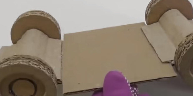 4:将轮轴放到底盘上,再粘一层纸板固定。