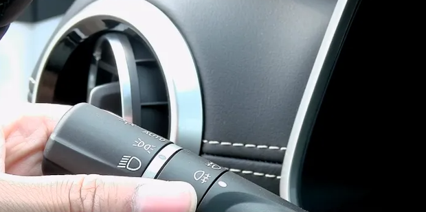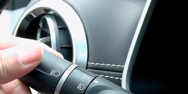 2:雾灯开启需要打开车辆的灯光,即开启示宽灯,在车辆的灯光操作杆上找到雾灯标识的位置,并旋转操作环。