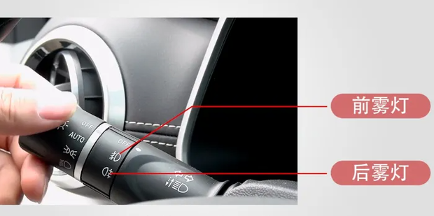 1:一般雾灯开启按来自钮在灯光操作杆上,分为前雾灯和后雾灯。