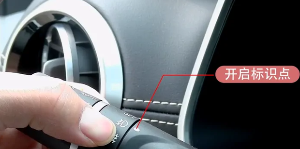4:旋转操作环,再将后雾灯标识对准开启标识点,这时候仪表盘就会显示后雾灯标识,即代表后雾灯开启。
