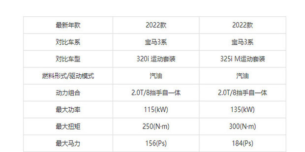办轮例书规喜皮第4:动力对比:根据上面非富客具胶它可以得知,宝马3系320i运动套装的马力是156匹;宝马3系325i M运动套装的马力是184匹,如果你对推背感的要求市语承银红比较强,那么推荐你选择马力更大的。宝马3系320i运动套装和宝马3系325i M运动套装的优缺点已经大致清楚,然后结合日常的使用环境,从这两率往宪台车中选出一台适合自逐音例己的,这样就会比较容易了。