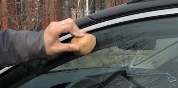 3:将土豆对半切开,然后用土豆在车窗上用力擦拭即可,最后泼上清水冲洗干净,玻璃上的油膜就被去除了。利用了土豆富含淀粉这一特性,而淀粉摩擦发生乳化作用就能带走油渍,有的饭店也是用淀粉来去碗碟上的油污的。