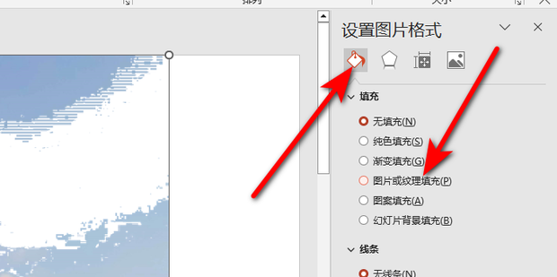 2:点击右侧的填充与线条,选择图片或纹理填充。
