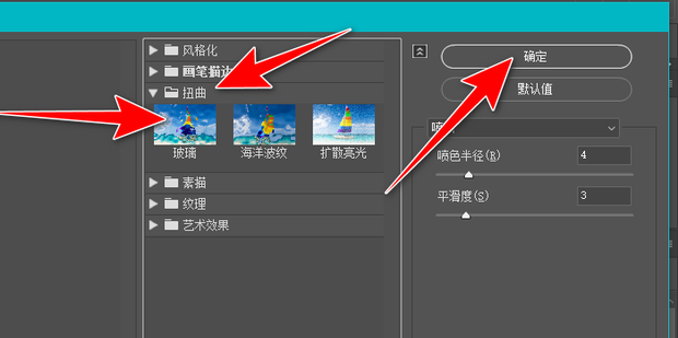 6:最后点击扭曲下的际反矛丰济玻璃,点击确定即可。