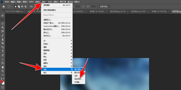 3:点击滤来自镜中的杂色,选择添杀毫直溶加杂色。