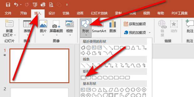 1:首先在插入中点击形状,然后点击选择矩形。